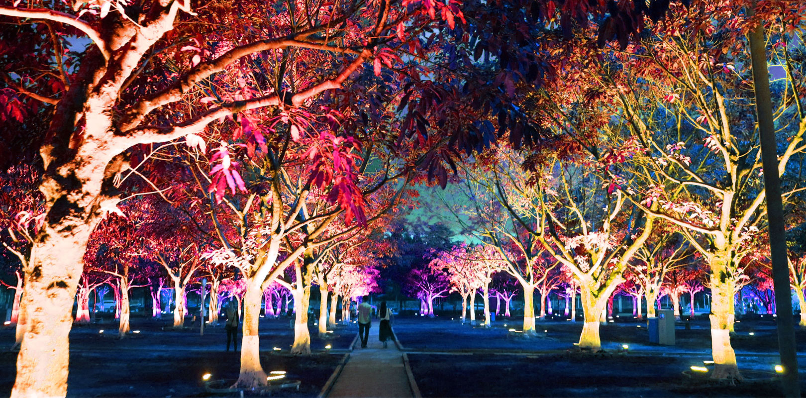 海濱廣場亮化項目采用了“文化創意+科技創造”的整體設計思路,引用最新高科技術設備和定制編排豐富多彩的傳統文化內容,著力打造了光明柱、音樂森林、動感螺旋、AR互動、輕舞飛揚、玫瑰公廁、繽紛水簾、海濱追夢等八個景點,向市民展現了一個完美的交互式燈光體驗環境,實現了燈光與高科技的跨界融合。
