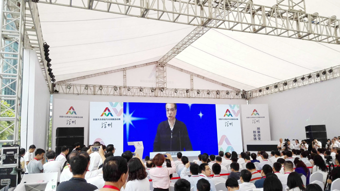 作為創新之都的深圳,也是“雙創周”的重要陣地,深圳分會場在深圳軟件產業基地同步開啟,通過現場的LED大屏幕實現畫面和信息的實時傳送、互動,并在北京主會場設立了“深圳創科空間”,展示新風采、新生態,其中有12各項目入選。李克強總理在北京主會場親自站臺鼓勵創新、創業人員,并強調無國籍、無膚色之區分,只要有創新意識和才能,中國的大門永遠對他們敞開,深圳市許勤市長也蒞臨深圳分會場現場助陣。