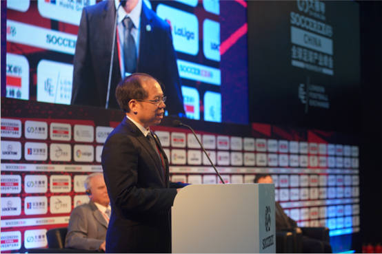 中國國足球協(xié)會常務(wù)副主席/秘書長、國際足聯(lián)理事張劍發(fā)表演講,提到振興和發(fā)展足球不僅是全球球迷的愿望,也是我國振興體育、建立體育強(qiáng)國的重要基石,中國已經(jīng)將把足球發(fā)展納入到國家戰(zhàn)略之中。