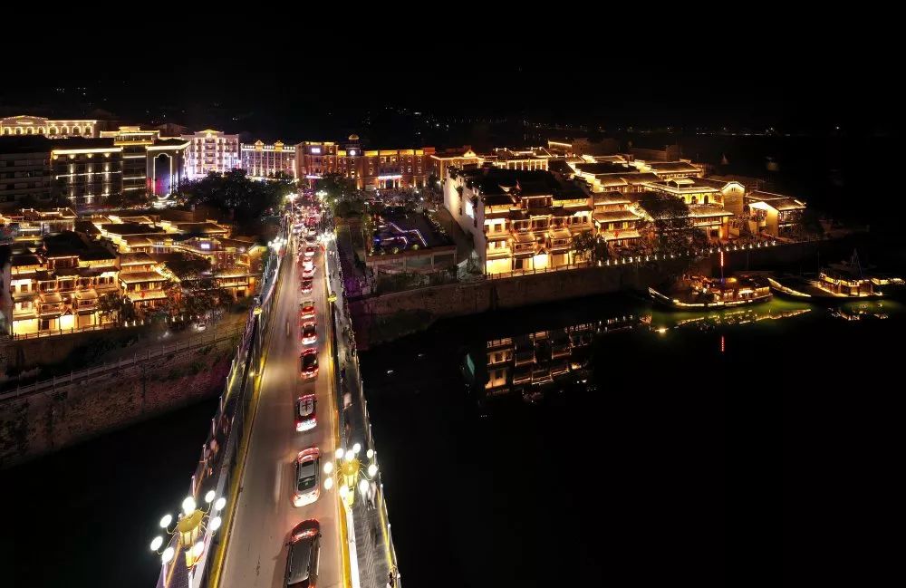 一半是山水,一半是光影。以燈光打造古商城的夜間堤岸線、沿江景觀帶,形成光作青羅帶,水作碧玉簪的意境景色。水波流動,光影變幻,眼前的古商城安靜地守候著江水潮起潮落,呵護著每一位住戶和經營者,接納來來往往的游客。