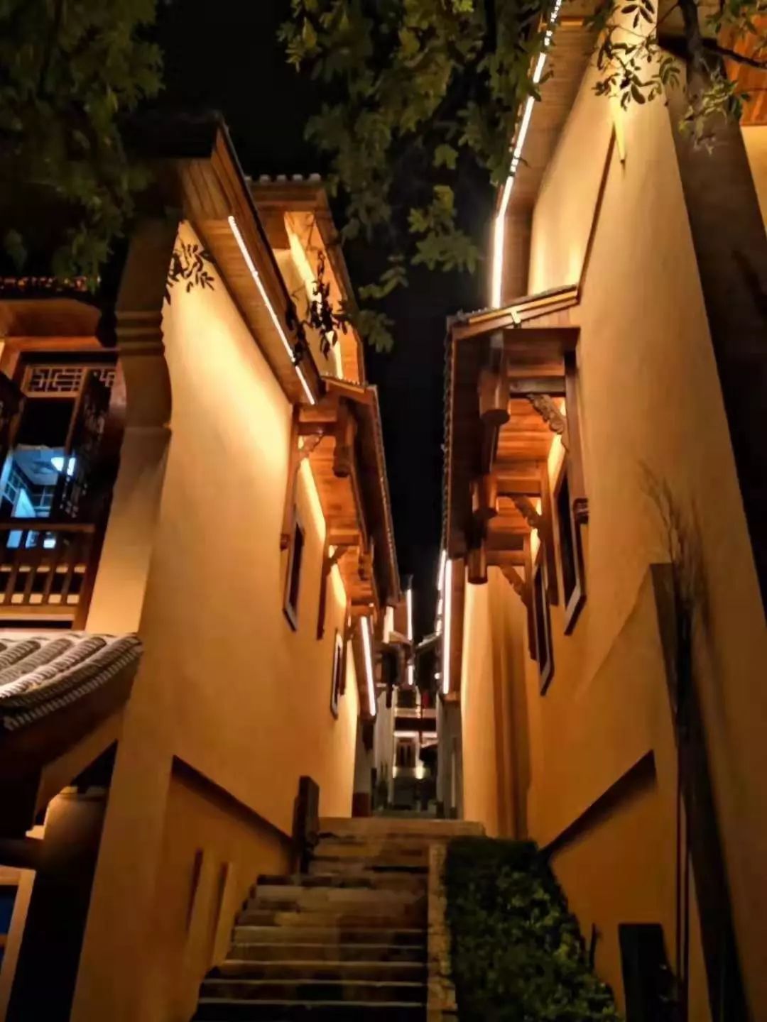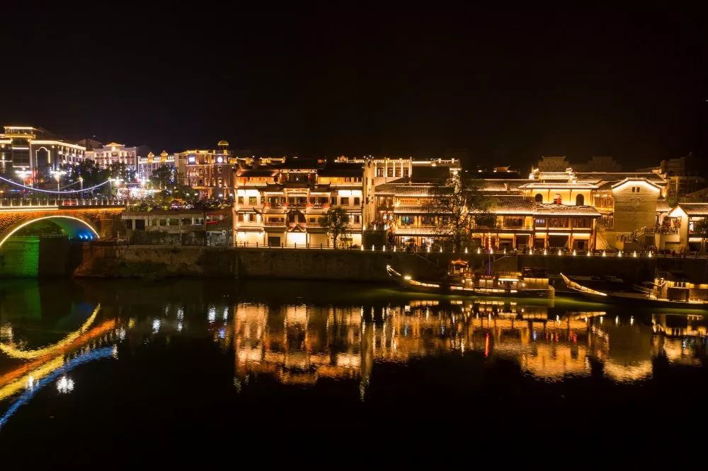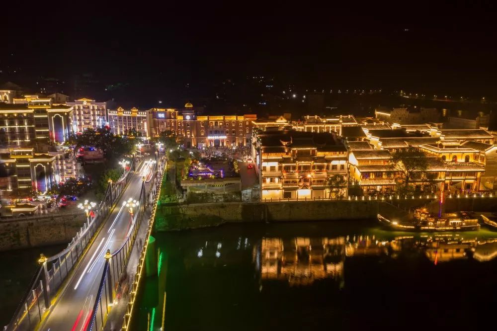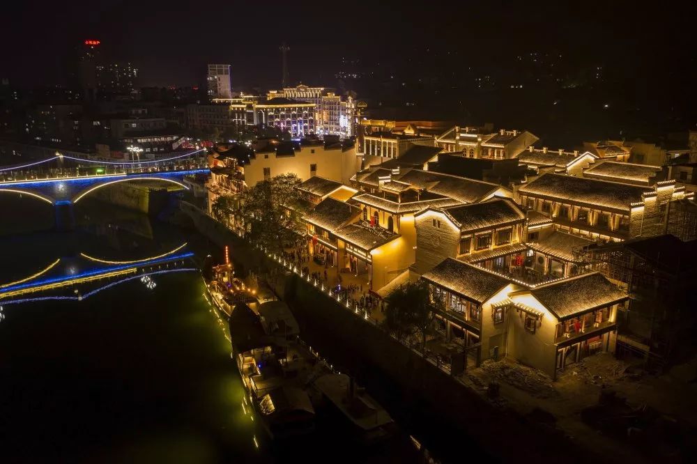 精致的木雕和房屋飛揚的翹腳構成了典型的具有沅湘特色的江南民居圖。“人向階梯時上下,屋隨山勢自高低。”在高低錯落、左拐右彎、曲折蜿蜒中,可享受到音樂般起伏的節奏。溫暖的燈光描繪出一副明清民國市井生活的風情畫。
