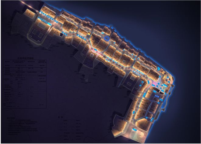 本案的照明設計借用連綿的建筑頂部燈光和沿江景觀燈光來表達山水與建筑、景觀的關系,借以表現洪江古商城的“山為骨架、水為血脈”的構架。以“光影流轉洪江美,古韻湘西洪商情”為主題,凝練洪江獨有的洪商文化內涵,沿襲洪江古建筑風貌,打造具有洪商旅游特色的夜間景色。