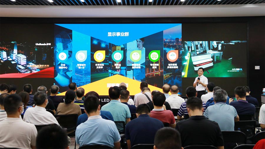 隨后舉行的座談會上,洲明集團董事長林洺鋒對來訪專家的到來表示熱烈歡迎。他認為,LED應用作為5G時代大數據最終呈現的入口和智能交互核心,將在新基建和智慧城市建設中不可或缺,希望未來能與深圳市電子與信息技術行業協會開展更多合作,不斷拓展LED產品應用,實現共贏發展。