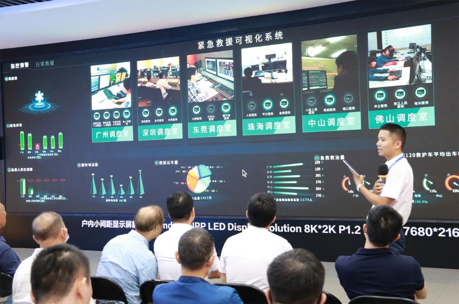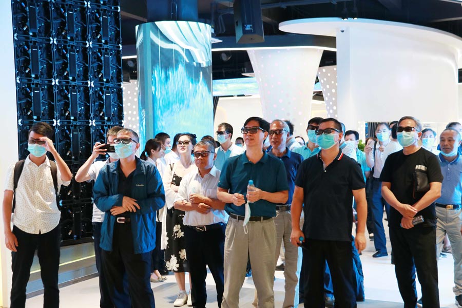 隨后的展廳參觀環節,洲明顯示國內營銷中心總經理李志用iPad為大家現場演示了洲明顯控運維平臺軟件系統對大屏的完美操控,并詳細介紹了洲明小間距LED、黨建網上展廳、沉浸式虛擬仿真場景、洲明智慧桿、透明屏、3D顯示屏等一系列創新技術成果。通過聽取介紹和親身體驗,來訪嘉賓對洲明LED技術優勢與成熟應用給予了高度評價。