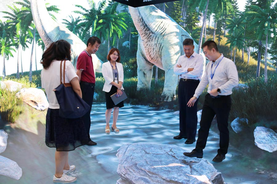 隨后,來訪嘉賓集體參觀了洲明小間距LED顯示屏、洲明智慧園區720°全景展示平臺、沉浸式虛擬仿真場景、動態人像識別系統、5G智慧桿、透明屏、3D顯示屏等創新成果。關積珍理事長一行通過聽取介紹和親身體驗,對洲明產品創新和設計創新的能力給予了高度評價,并對洲明LED顯示技術優勢與成熟應用表示贊賞。