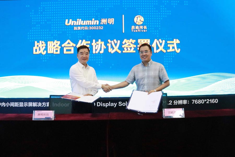 在智慧水利建設加速推進的良好勢頭下,9月17日,洲明集團與啟迪控股旗下啟迪河長科技服務有限公司(以下簡稱啟迪河長)在深圳簽署戰略合作協議。未來,雙方將充分發揮各自影響力和競爭力,強強聯手,在水利信息化領域開展深度合作,為我國水利行業發展賦能。