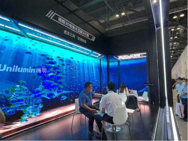 在十四五全面推進的當下,國家從政策層面大力推動文旅及夜經濟發展,裸眼3D創意光顯迎來新的機遇。在洲明裸眼3D創意光顯解決方案展示區,沉浸式的裸眼3D畫面吸引了眾多現場觀眾打卡圍觀。