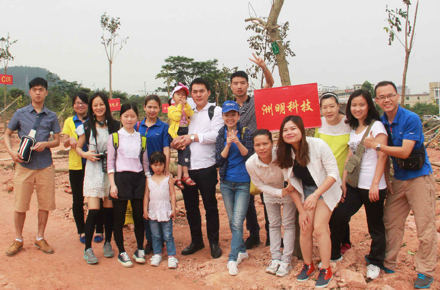 上午9點40,近百家企業齊集鳳凰山公園植樹區,活動主席向大家傳達了“自覺推動綠色發展、努力建設美麗深圳”的主題,并宣布植樹活動正式開始。洲明今年種植40棵小樹苗,20余人的隊伍,分成兩個小分隊,每組植樹20棵。大家在王總的帶領下,按照分工,挖坑、扶苗、澆水、夯實土層,相互配合而井然有序。其中,洲明有幾名員工還帶來了家人和孩子,孩子們也熱情高漲地幫忙扶小樹苗、澆水,認真的小臉上掛著辛勤勞動的汗水,希望他們也能同小樹苗一樣,在陽光下茁壯成長!