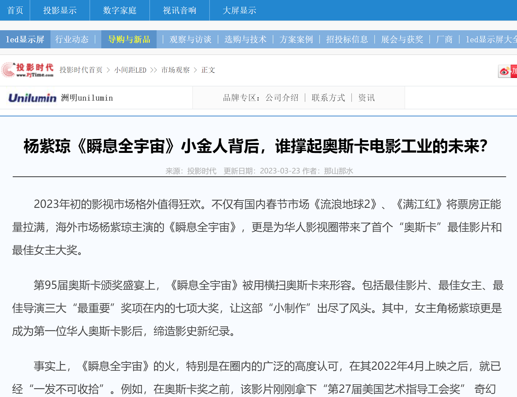 楊紫瓊《瞬息全宇宙》小金人背后,洲明集團及旗下ROE扮演了什么角色?誰又撐起了奧斯卡電影工業的未來?